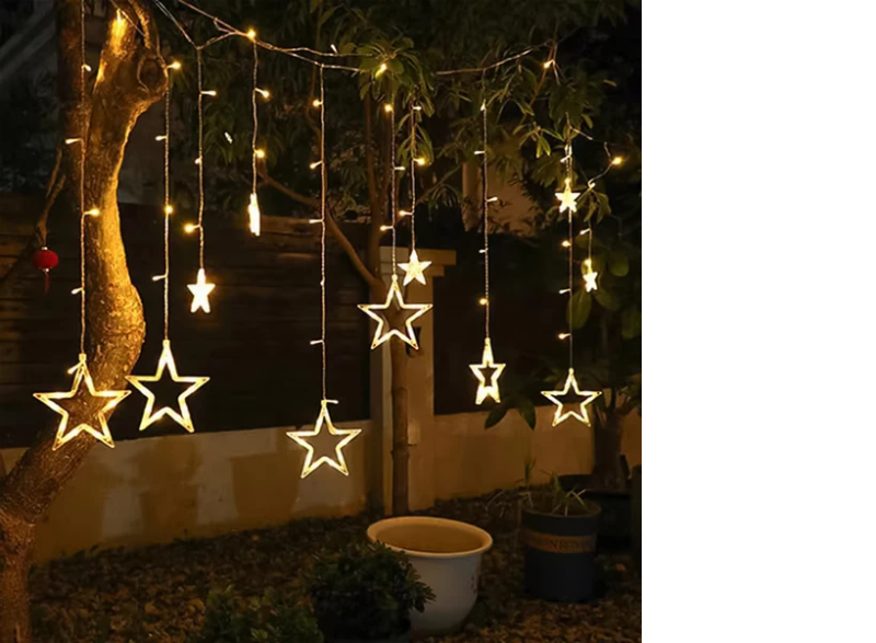12 Stars LED Curtain String Lights with 8 Flashing Modes for Home Decoration, Diwali & Wedding LED Christmas Light Indoor and Outdoor Light ,Festival Decoration (Warm White / With Box)