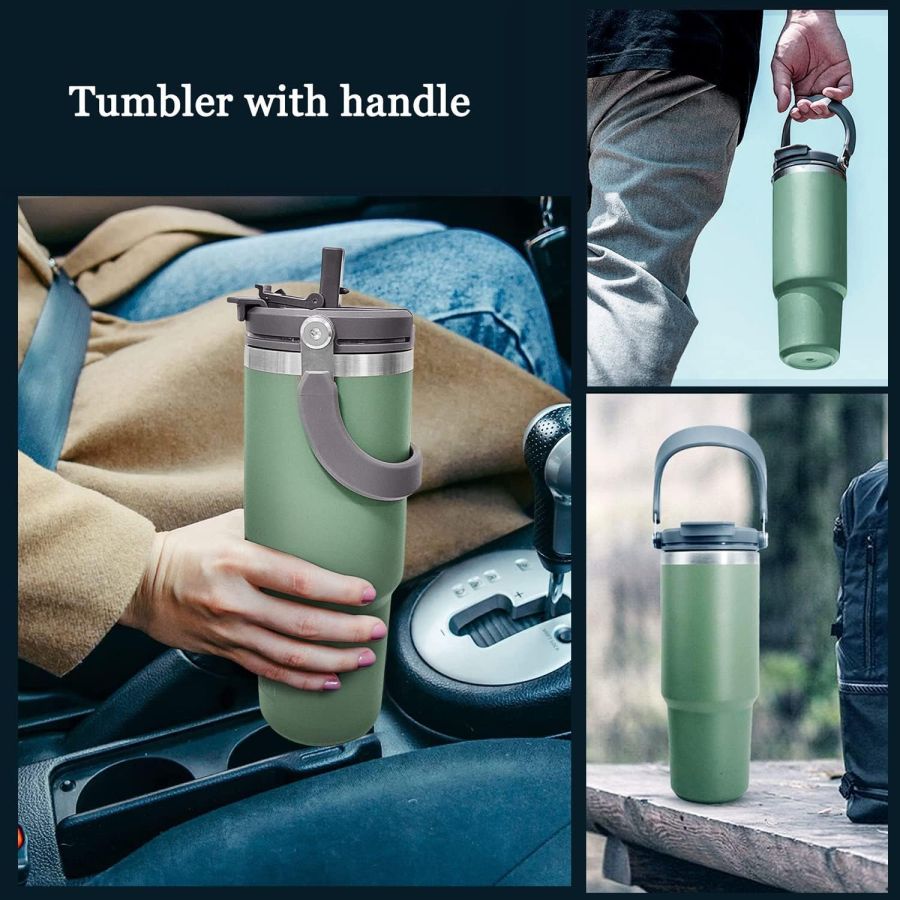 890 ml Stainless Steel Vacuum Insulated Tumbler Leak Resistant and Durable Bottle Included Reusable Straw and Airtight Lid for Gym, Travel, Indoor, Outdoor Use (DL-Olive)