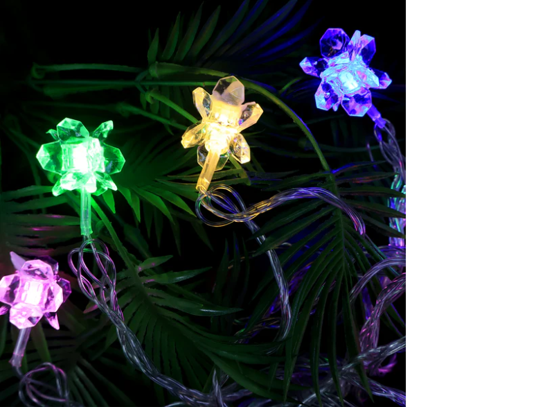 With a total length of 8 meters, these decorative lights are fitted with multiple bright and energy-efficient LEDs that emit a warm, enchanting glow. The crystal flower design enhances the brilliance of the light, creating a festive, romantic, and soothing ambiance.