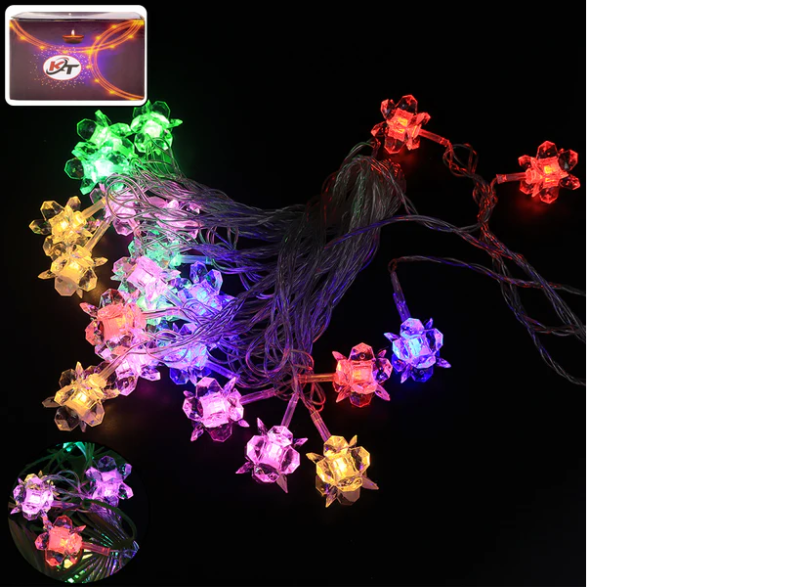 Add sparkle and charm to your celebrations with the Crystal Flower LED Decorative String Light. Designed with beautiful crystal-like flower-shaped covers, these string lights create a dazzling effect, making them perfect for Diwali, Christmas, weddings, birthdays, parties, pooja décor, or everyday home decoration.