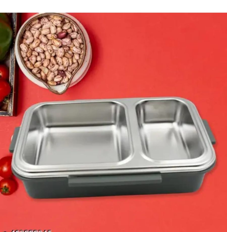 Customize Miracle Quick Lock Leak Proof 2 Compartment Stainless Steel LUNCH BOX Inner Plate Reusable Microwave Freezer Safe Lunch Box Trendy Thermal Insulation Leak Proof for Office Vacuum Tiffin Box for Boys / Girls / School / Office Women and Men