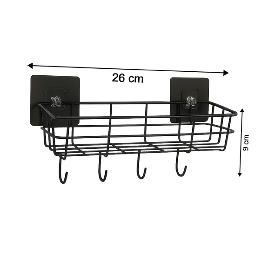 Product Type: Wall-mounted storage basket with hooks (adhesive mount)