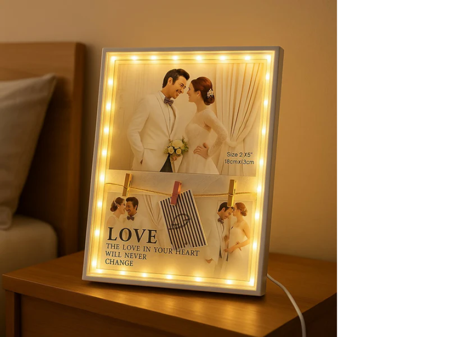 LED Rectangle Photo Frame with Warm Golden Glow | Decorative Light-Up Picture Frame for Couples | Wedding, Anniversary, Valentine’s Day & Home Décor Gift