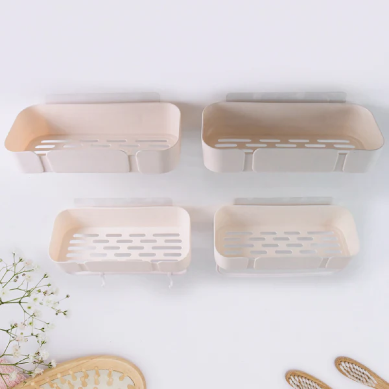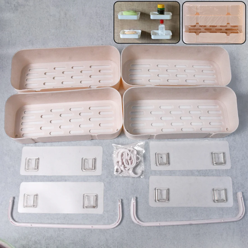 Multipurpose Kitchen Bathroom Wall Corner Shelf Rack with Adhesive Strong Hook Bathroom Shelf Shower Shampoo Holder Kitchen Storage Rack Organizer (4 Pcs Set)
