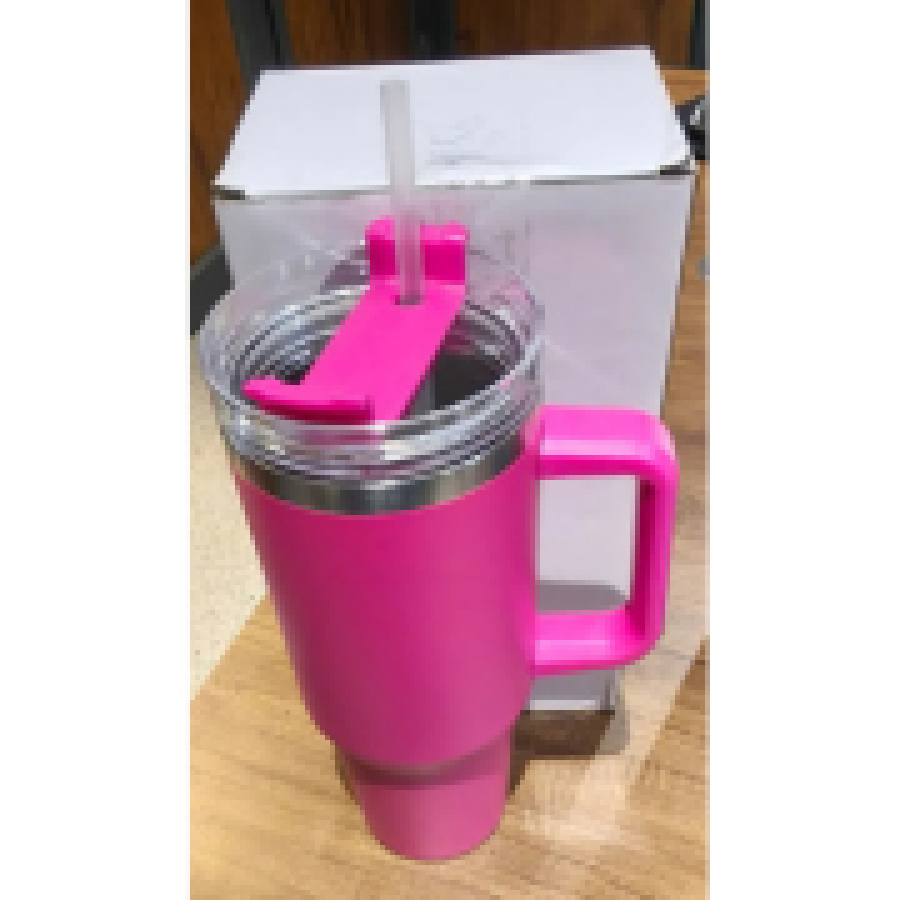 Pink 40oz Insulated Tumbler: Jumbo-sized style meets all-day performance. This vibrant pink mug keeps drinks hot or icy cold for hours with its vacuum insulation, while the leak-resistant lid makes it perfect for gym, travel, or desk. Hydrate in huge, hassle-free style.