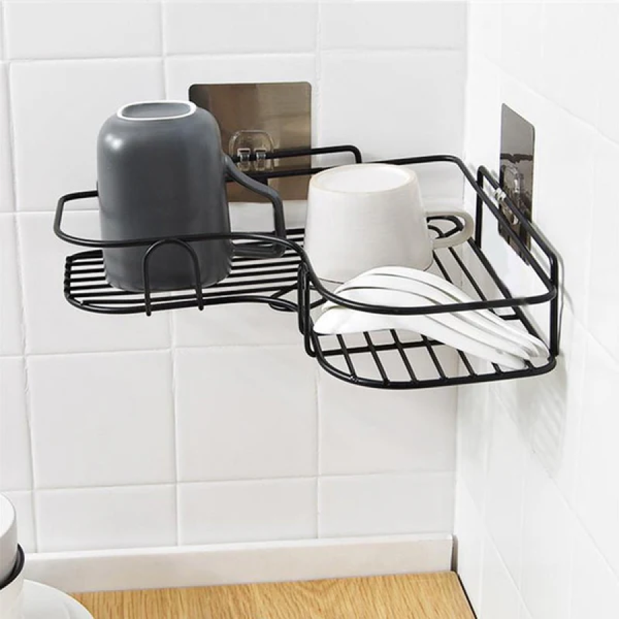 Self-Adhesive Kitchen-Bathroom Corner Shelf Organiser Storage Rack