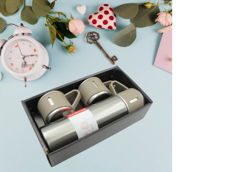 Stay hydrated and enjoy beverages on-the-go with the Stainless Steel Vacuum Flask Set with 3 Steel Cups, combining convenience, durability, and modern design.