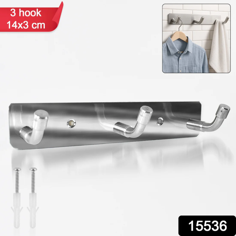 Stainless Steel Wall Mounted Coat 3 Hook Rack (14x3 / 1 Pc)