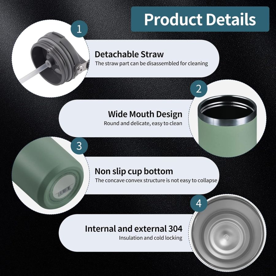 890 ml Stainless Steel Vacuum Insulated Tumbler Leak Resistant and Durable Bottle Included Reusable Straw and Airtight Lid for Gym, Travel, Indoor, Outdoor Use (DL-Olive)