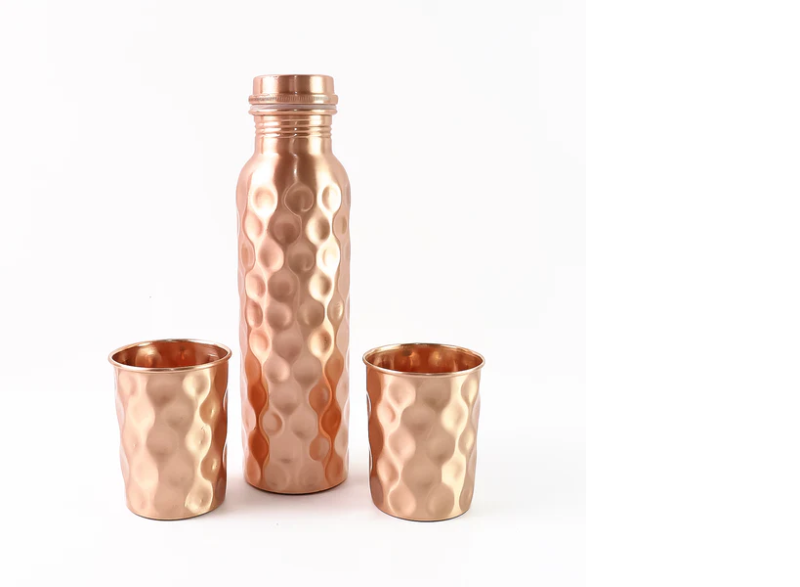 Set Includes: 1 copper water bottle + 2 copper glasses + gift box