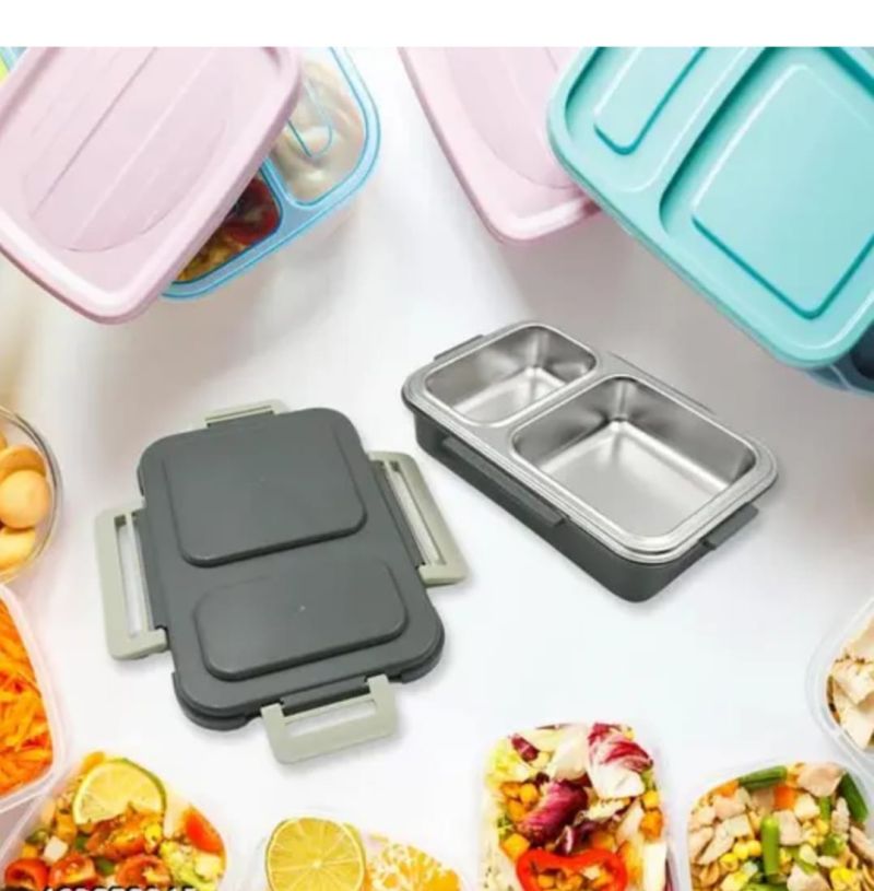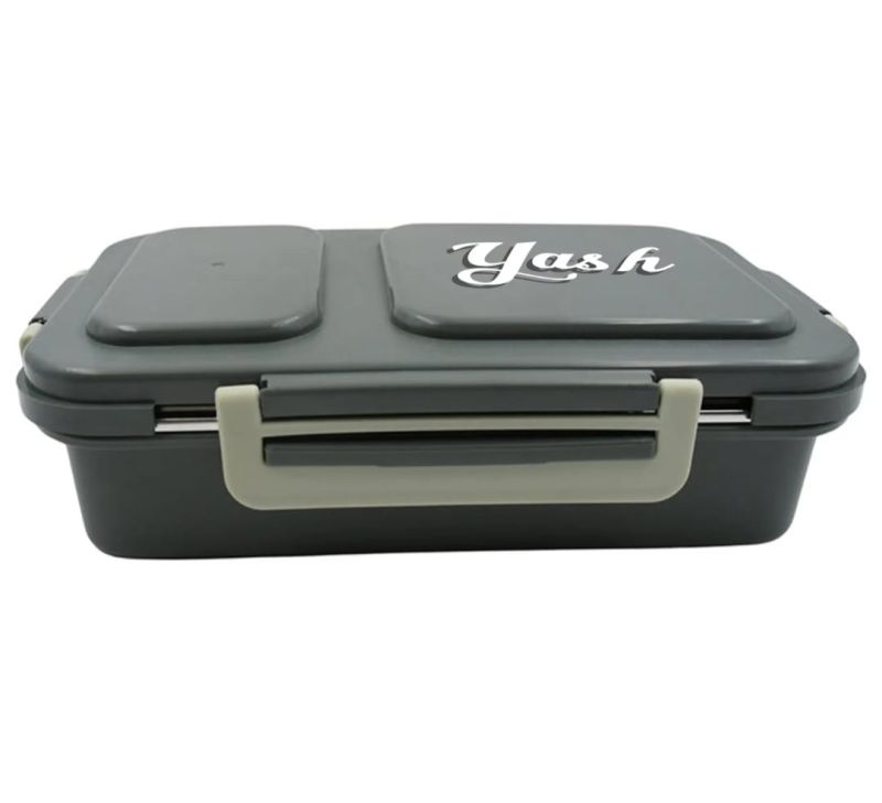 Customize Miracle Quick Lock Leak Proof 2 Compartment Stainless Steel LUNCH BOX Inner Plate Reusable Microwave Freezer Safe Lunch Box Trendy Thermal Insulation Leak Proof for Office Vacuum Tiffin Box for Boys / Girls / School / Office Women and Men