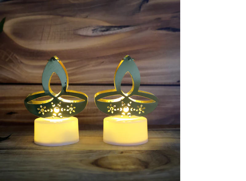 Golden Diya Shaped LED Tealight Candles (12 Pc)