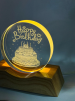 Happy Birthday 3D Acrylic LED Night Lamp with Wooden Base – Laser Engraved Birthday Cake Design | USB Powered Warm Light Table Decor | Unique Birthday Gift for Friends, Kids & Family