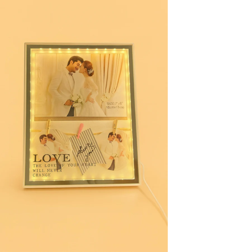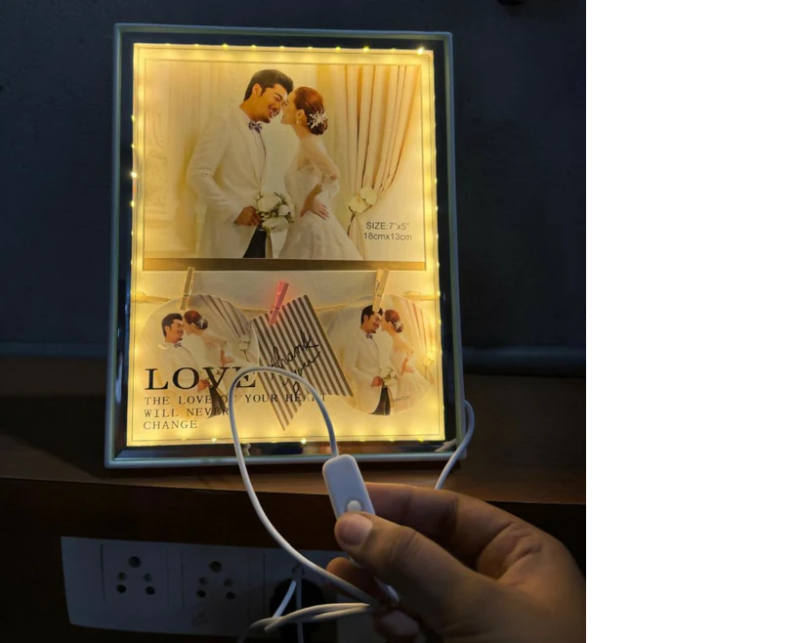 LED Rectangle Photo Frame with Warm Golden Glow | Decorative Light-Up Picture Frame for Couples | Wedding, Anniversary, Valentine’s Day & Home Décor Gift