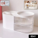 Multi-Functional Plastic Vanity Storage Box with Rotating Organizer Tray and Dual Transparent Drawers – Makeup & Cosmetic Organizer for Dressing Table, Bathroom, and Bedroom – Elegant White Finish