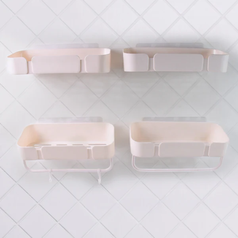 Multipurpose Kitchen Bathroom Wall Corner Shelf Rack with Adhesive Strong Hook Bathroom Shelf Shower Shampoo Holder Kitchen Storage Rack Organizer (4 Pcs Set)