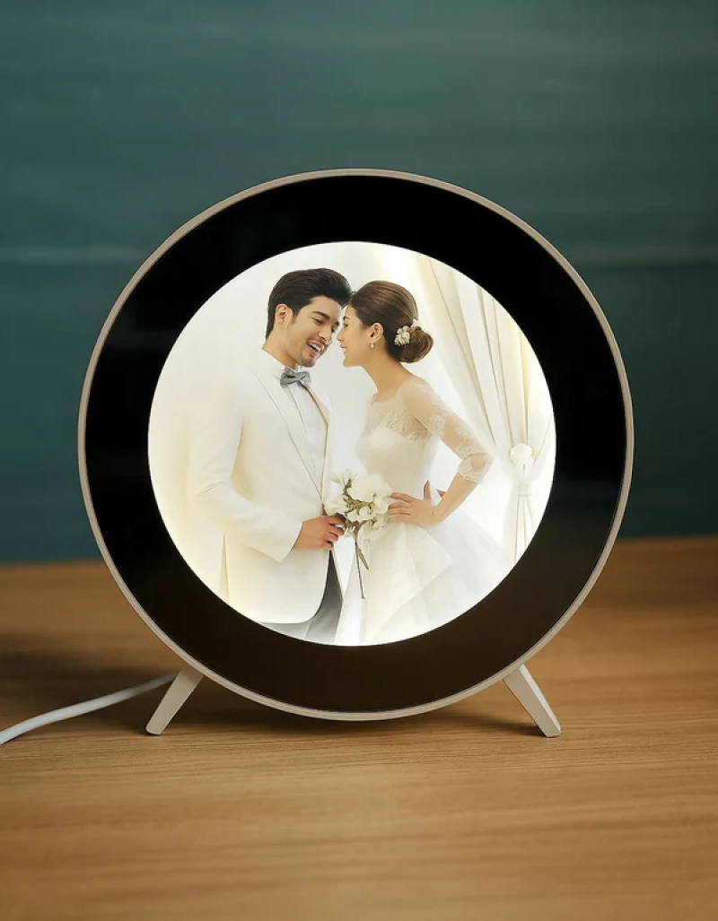 Illuminate your most cherished moments with GlowFrame Memories — a modern circular photo lamp that combines soft ambient lighting with personalized elegance. Perfect for displaying romantic portraits, this sleek LED frame enhances any space with warmth and emotion, making it an ideal gift for anniversaries, weddings, or home décor.
