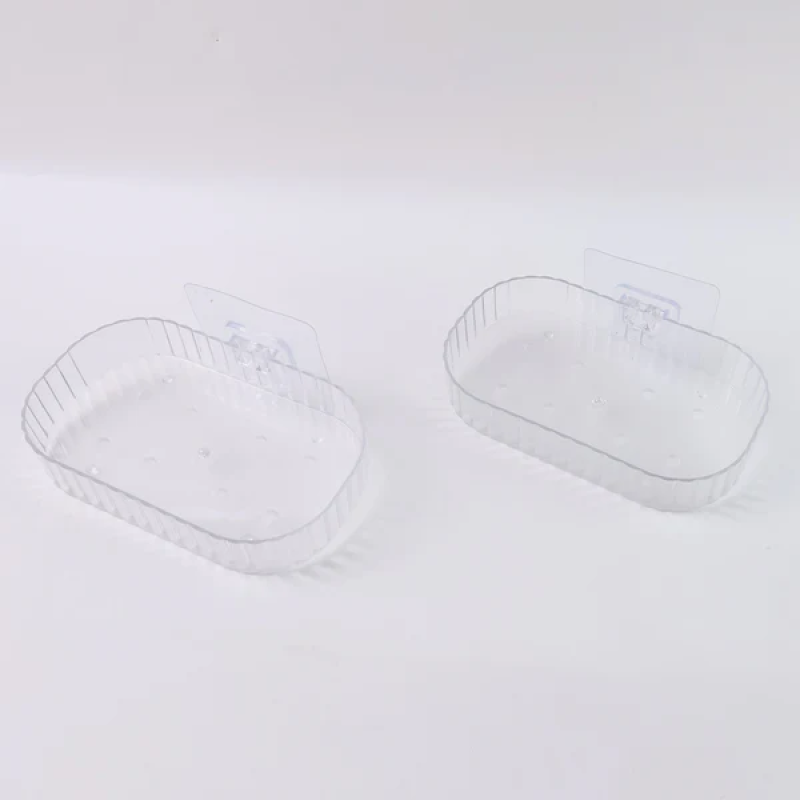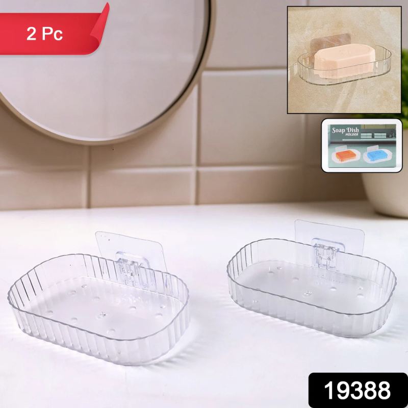 Self Adhesive Transparent Wall Mounted Soap Dish Holder (2 Pc)