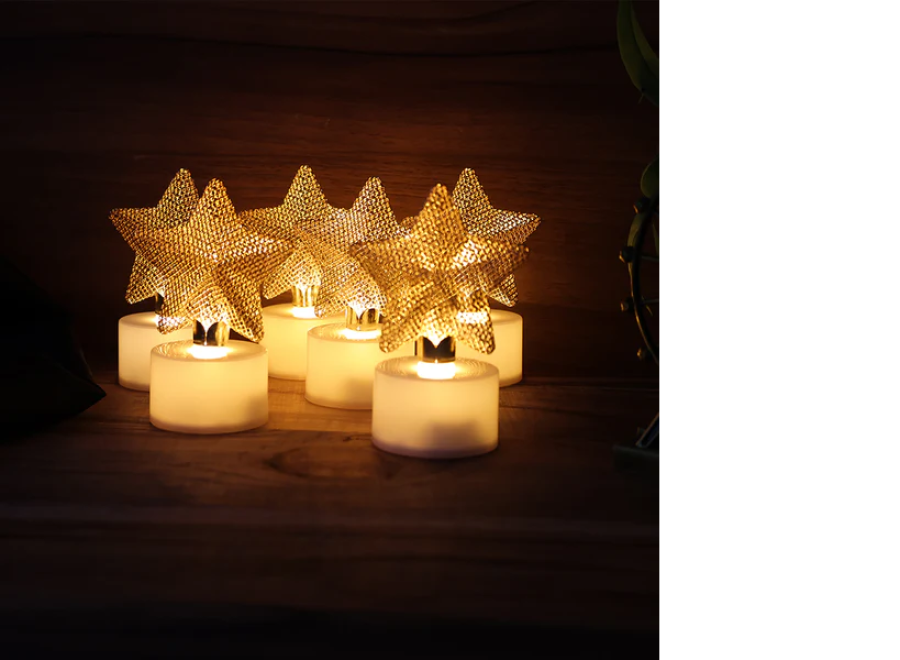 Set of 6 Decorative LED Star Candles – Flameless & Reusable