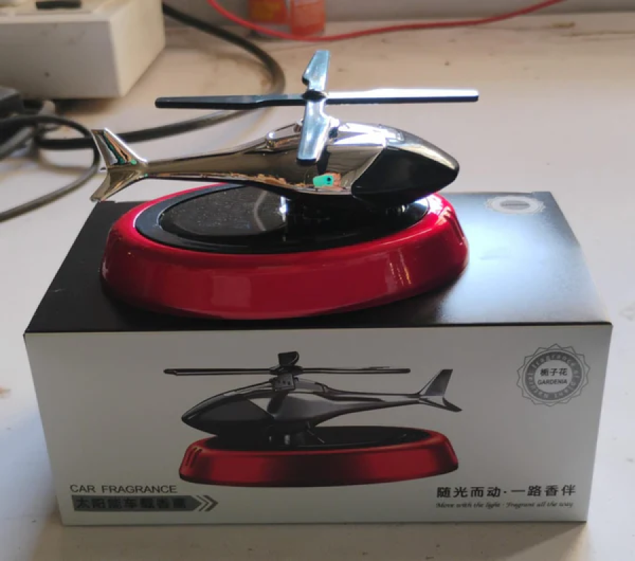 Elevate your car’s ambiance with this Solar-Powered Helicopter Car Perfume Diffuser. Crafted in the shape of a sleek helicopter, it spins its propellers when exposed to sunlight and gently releases a refreshing fragrance throughout your vehicle. A modern dashboard accessory that doubles as an air freshener and a decorative showpiece.