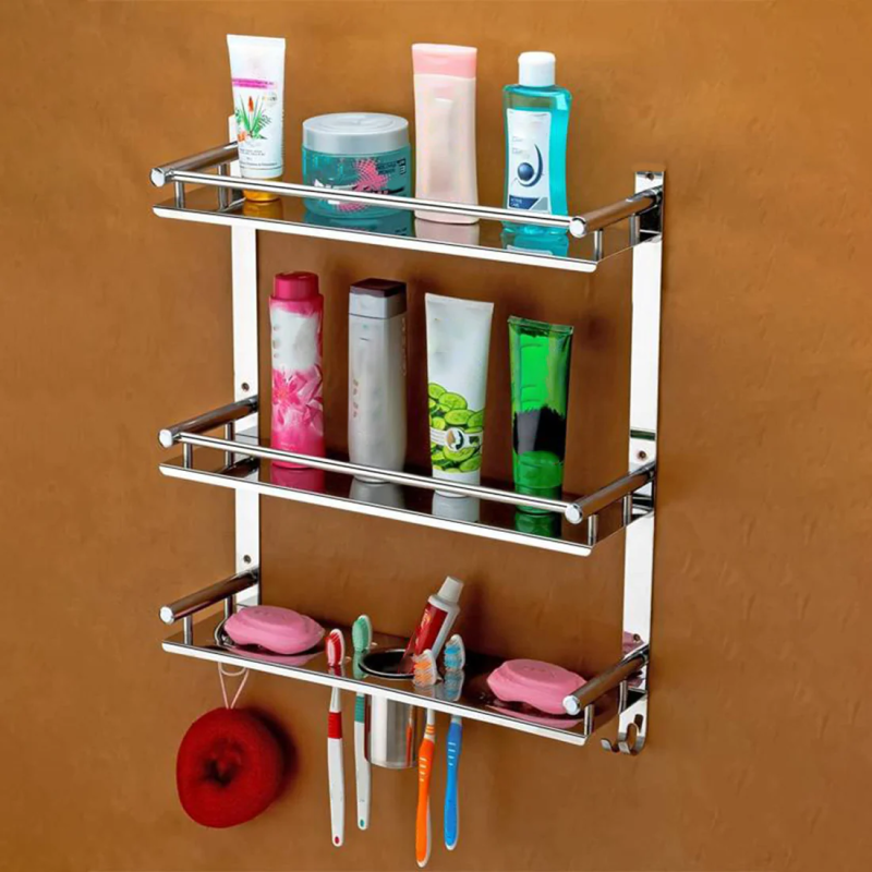 Stainless Steel 6 In 1 Multipurpose Bathroom Shelves Rack (15Inch)